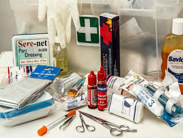- Gauze in rolls and in 2” and 4” pads: For dressing wounds.