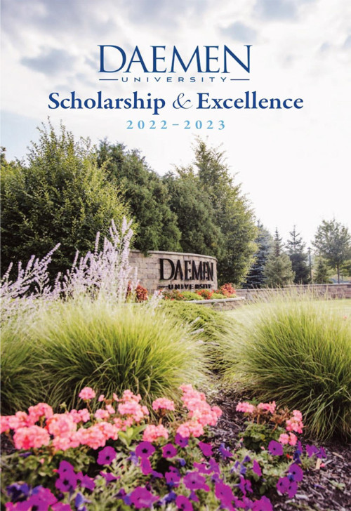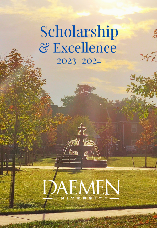 Each year, Academic Affairs collects information about the professional achievements of Daemen's full-time faculty, such as publications, presentations, awards, grants, professional service to one's field, etc. Information provided may be included in Daemen's annual "Scholarship & Excellence" publication, which serves as a celebration of faculty accomplishments and a promotional piece to share with visitors, job candidates, donors, and colleagues at other higher ed institutions. All content is reviewed and, if necessary, edited by the provost and the academic deans.