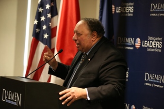 May 17, 2016AMHERST, N.Y. -- John Catsimatidis shared his life journey from emigrating to the United States from the Greek island of Nisyros to becoming a self-made billionaire business owner as featured speaker at the Daemen College Distinguished Leaders Lecture Series held on May 9.