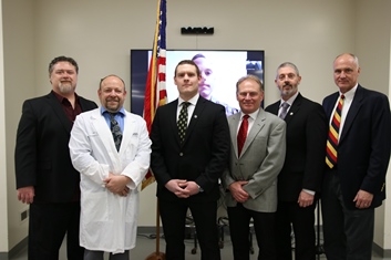 Pictured at right are: (L-R) Dr. Michael Ross, assistant professor of physical therapy; Dr. Gary Styn, director of graduate anatomical sciences and clinical assistant professor; Dr. Sean Christie; Dr. Ron Schenk, professor of physical therapy; Dr. Greg Ford, chair of physical therapy; and Dr. Karl Terryberry, professor of composition.