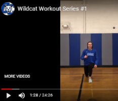 The five workout sessions, which can be completed in 30 minutes or less, have been designed for a small space, such as a room at home or in on campus housing. “In addition to following social distancing guidelines, students have limited resources and space for fitness activities,” said Eschner. “Using items for exercise equipment that are readily available, such as a desk, towel, water bottle, or backpack, gives students the ability to challenge themselves and stay active in a small workout space.”