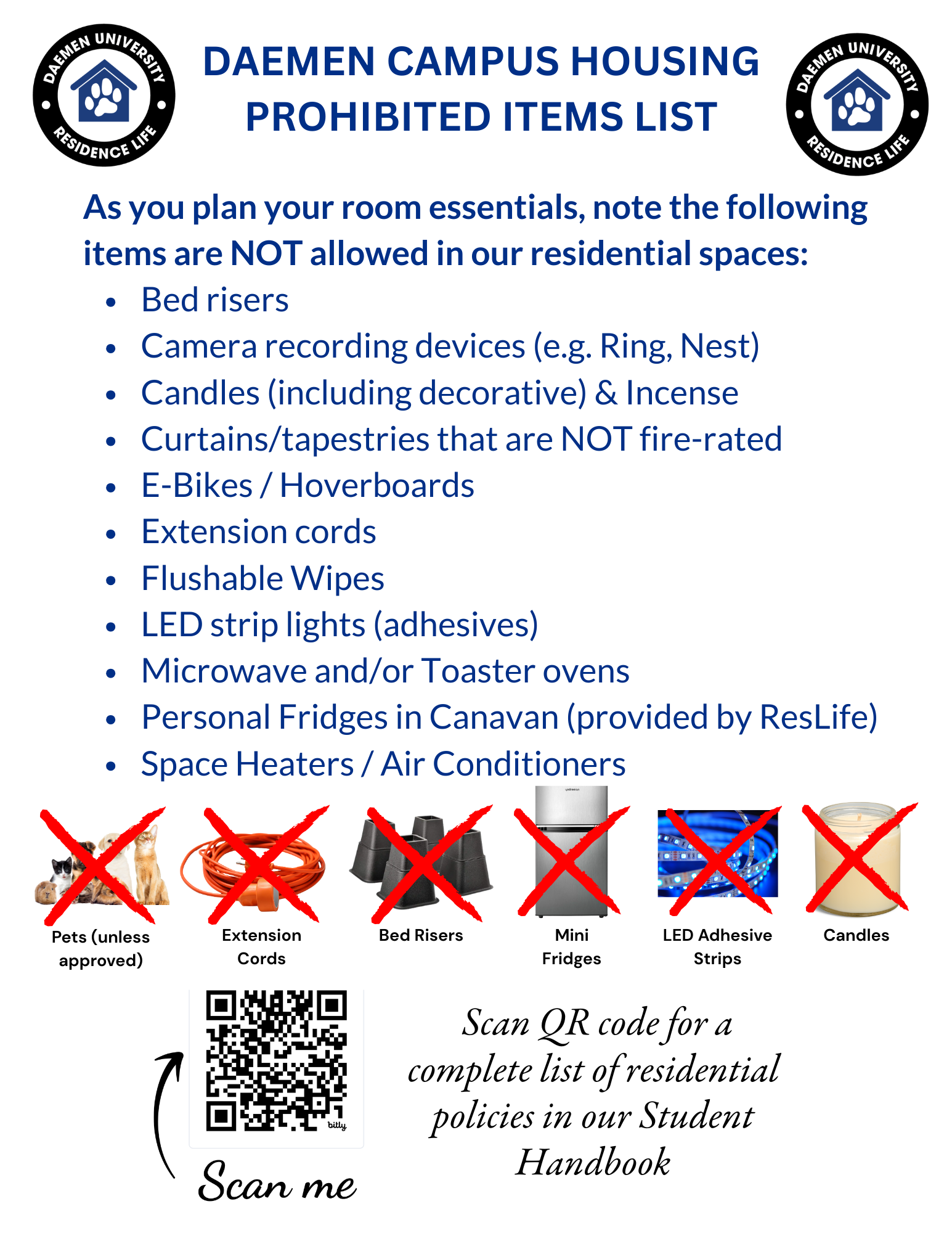 Ensure to read up on Daemen University's student health insurance requirements. Students who have not provided proof of insurance by move-in will not receive their residential key.